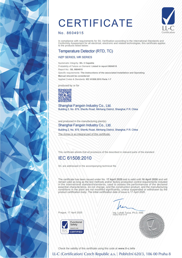 級精度產(chǎn)品制造計量許可證的極少數(shù)合法企業(yè)之一。并且率先采用了國際通用的分度號色標(biāo),從而使安裝在設(shè)備上的產(chǎn)品的分度號非常醒目,便于識別和更換,因此多年來受到熱工維檢人員的贊譽。